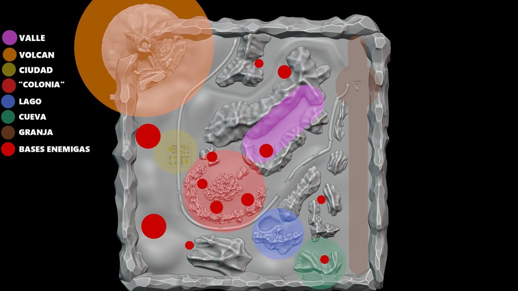 The map spans 4 km², carefully divided and organized to guide the player through the key areas of the environment.